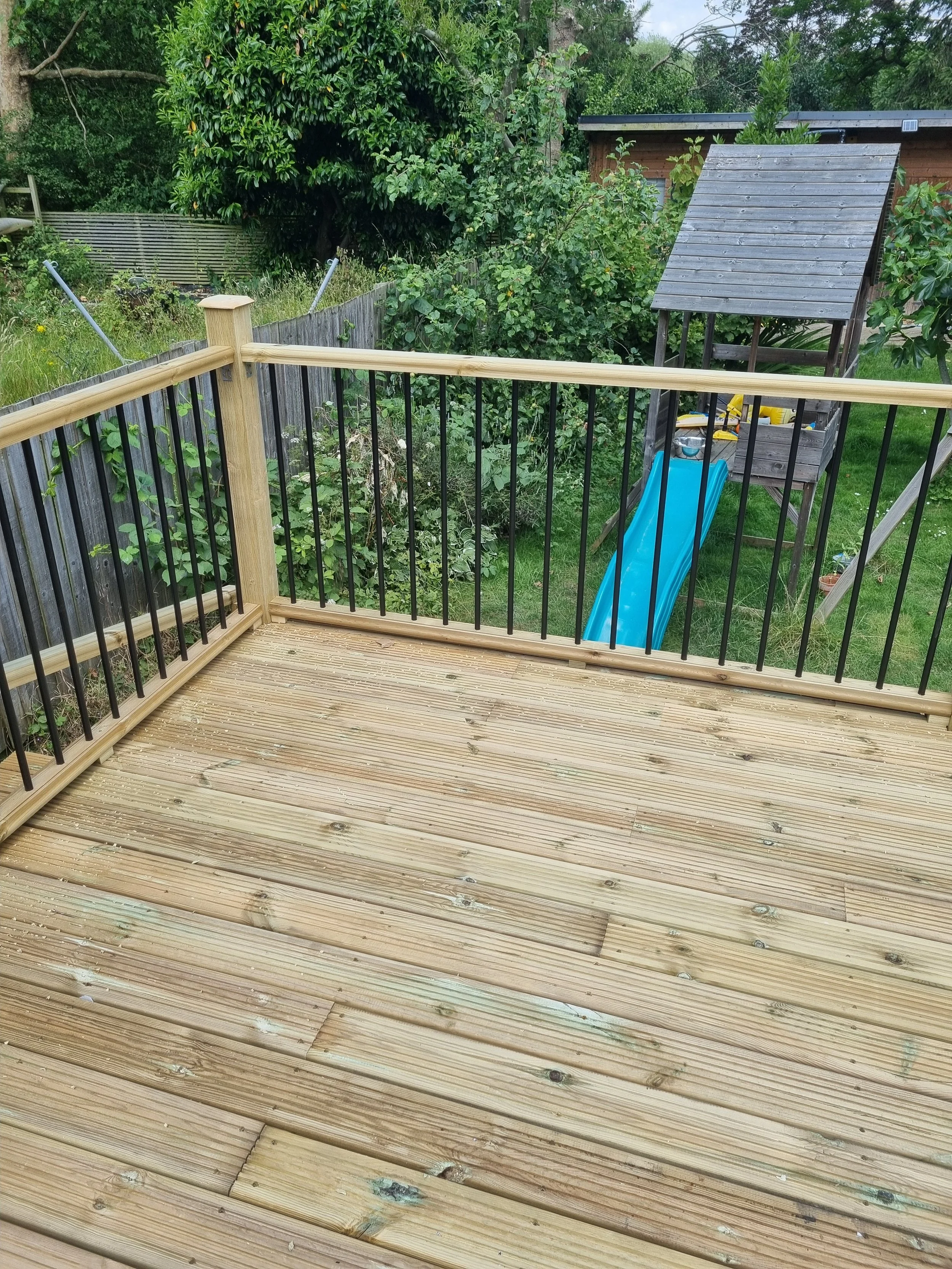 In Leamington Spa, idigbo carpentry successfully transformed a frequently flooded garden into a functional and attractive outdoor space. The project involved constructing raised decking and steps, elevated on durable supports to prevent water damage and ensure long-lasting structural integrity. The result is a beautifully crafted, practical solution that enhances the garden's usability and aesthetic appeal, providing a perfect outdoor retreat for the homeowners.